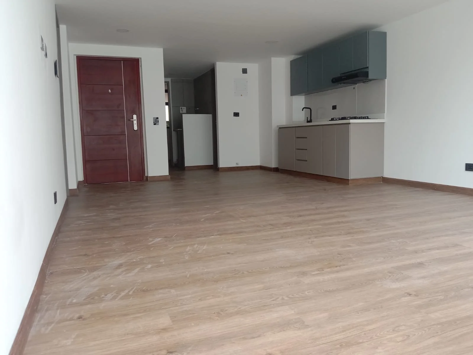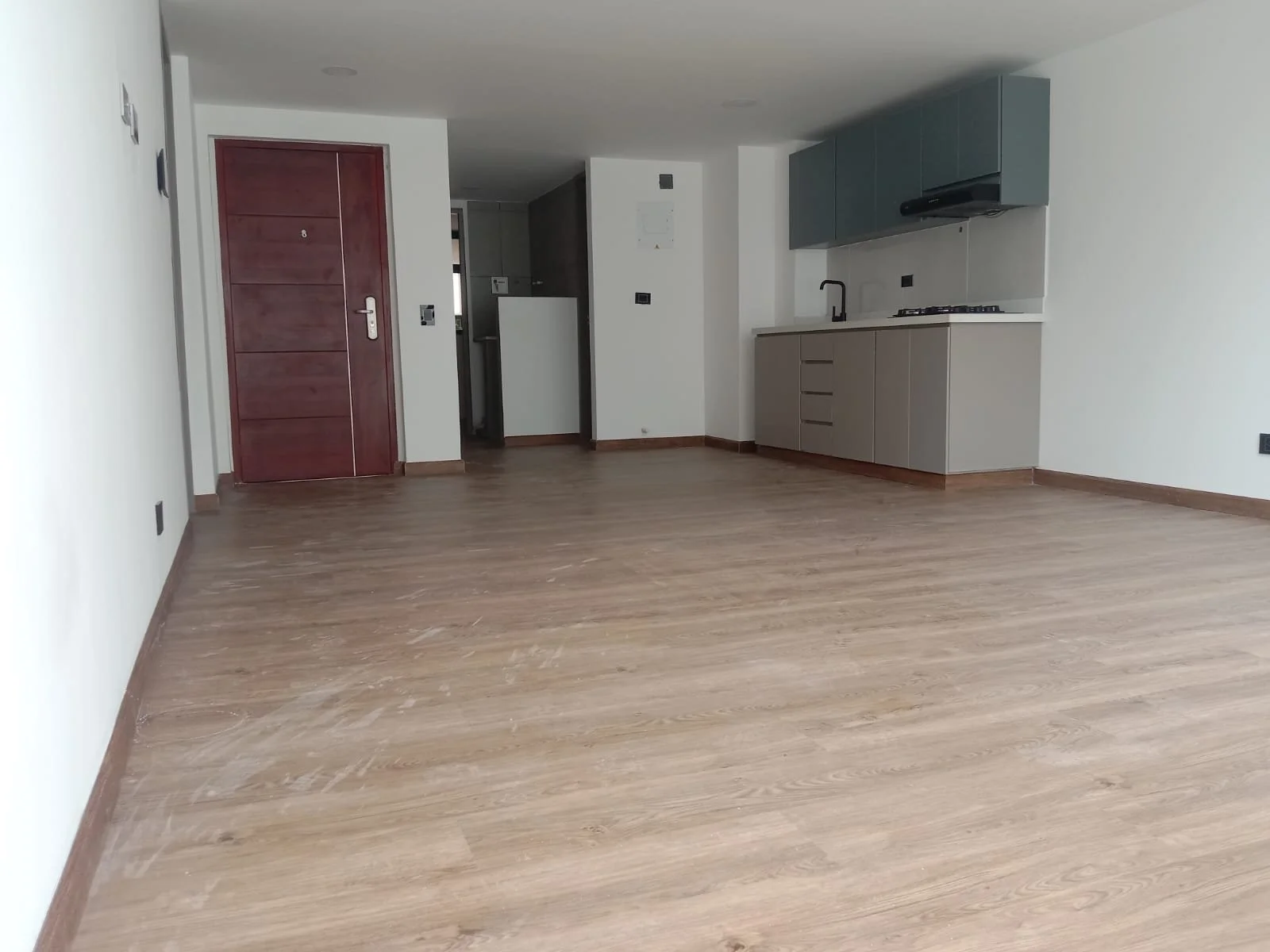 Apto de 60mts, primer piso, sala comedor, 2 alcobas, 1 closet, cocina integral con red de gas, zona de ropas, patio de 27mts, calentador de agua a gas, iluminación led, 2 baños, balcón. PARA ESTRENAR.